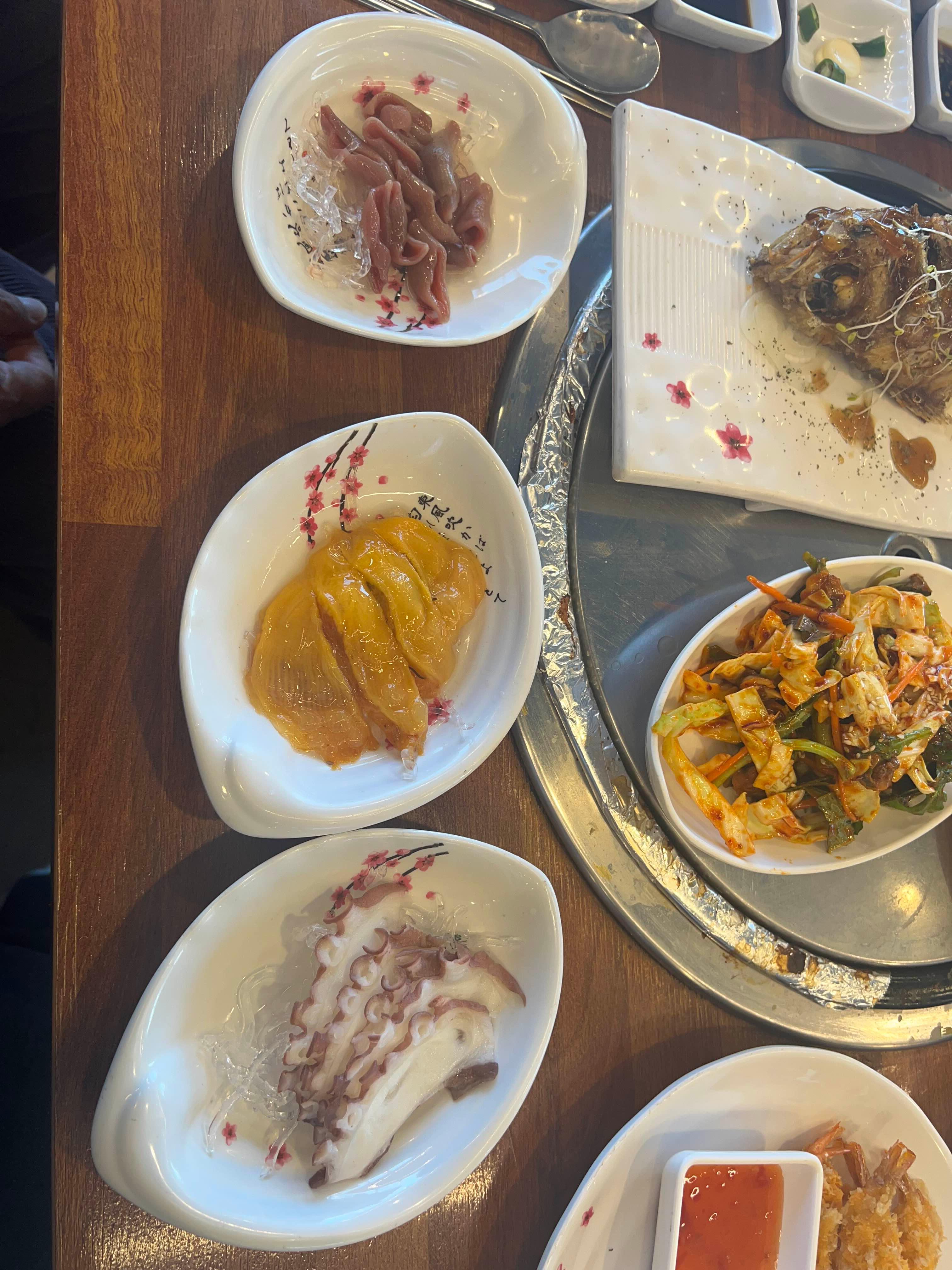 각종 해산물 (멍게 해삼 전복 소라 문어 개불) 6 종류가 나왔어요!! 전부 안 비리고 신선했어요!!